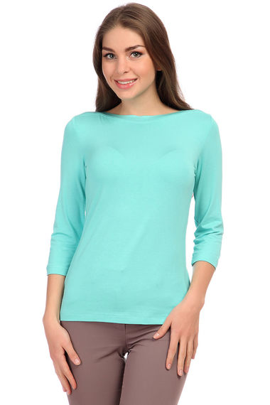Базовая модель блузки облегающего кроя, с рукавами 3/4 и аккуратной круглой горловиной. Модный цвет "аквамарин" освежает и привлекает внимание!